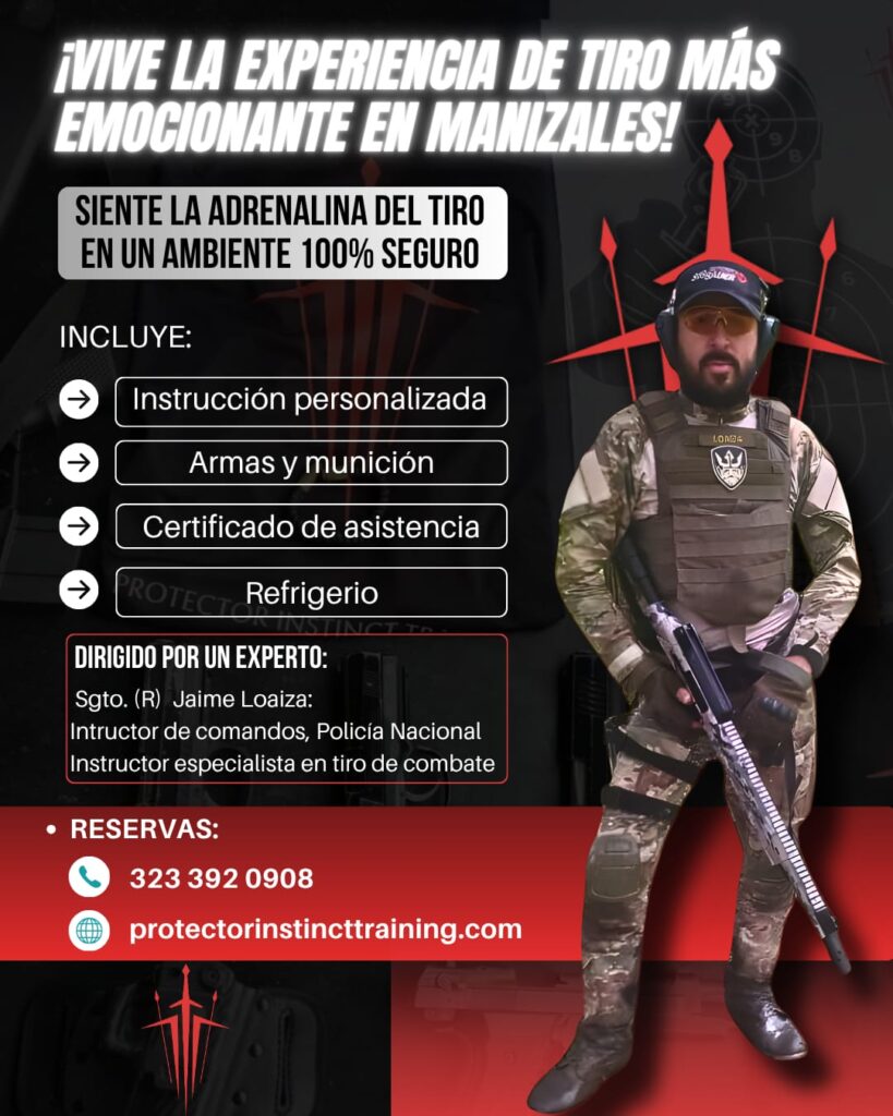 En un ambiente 100% seguro y controlado, aprenderás las bases del tiro táctico, defensa personal y reacción ante amenazas imprevistas, bajo la guía directa de un instructor élite con trayectoria en unidades de comando de la Policía Nacional.